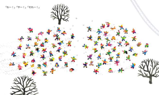 動物たちの雪を踏む音や、息づかいまで聞こえてきそうな、しんとした空気。雪のなかをかけまわる、子どもたちのにぎやかな笑い声。雪が作りだすしずけさのなかに、たくさんの音が聞こえてくる一冊です。