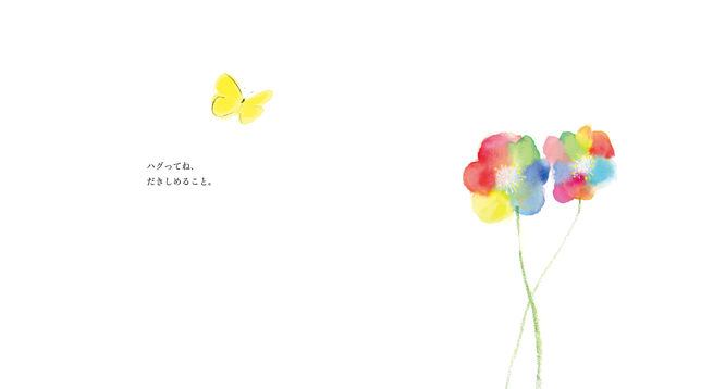 カバー袖の「あとがき」では、「だきしめなくても、目と目で。手と手で。こころがふれあって、あいてをだいじに思うことは、みんなハグ。」と書かれていますね。
