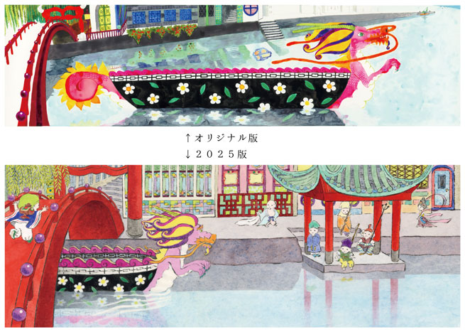 オリジナル版はモダンで、印象がちがいますね! 今回の作品はより、「めでたい」雰囲気にあふれていますね。