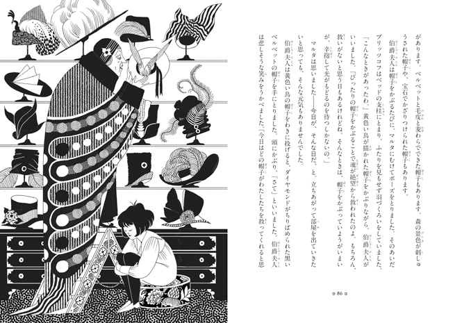 ジュリア・サルダの挿絵はビアズリーのように耽美で、ユーモアもほんのりあるのだけど、隠し味として耳かきいっぱいほどの毒が含まれています。だから、なんとなく怖い……。