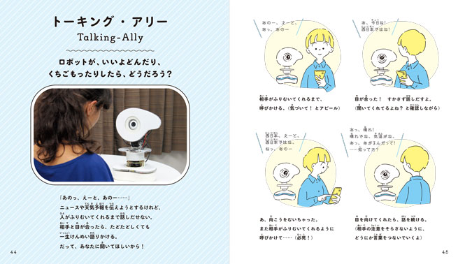 他にもいろんな弱いロボットが登場する。スラスラ話せずに、「いいよどみ」や「いいなおし」の多いロボットは、個人的にとくに好きだ。文章を書く仕事をしているからこそわかるが、うまく話せないことこそ、言葉にできないことまで言葉にしようとがんばっているということなのだ。